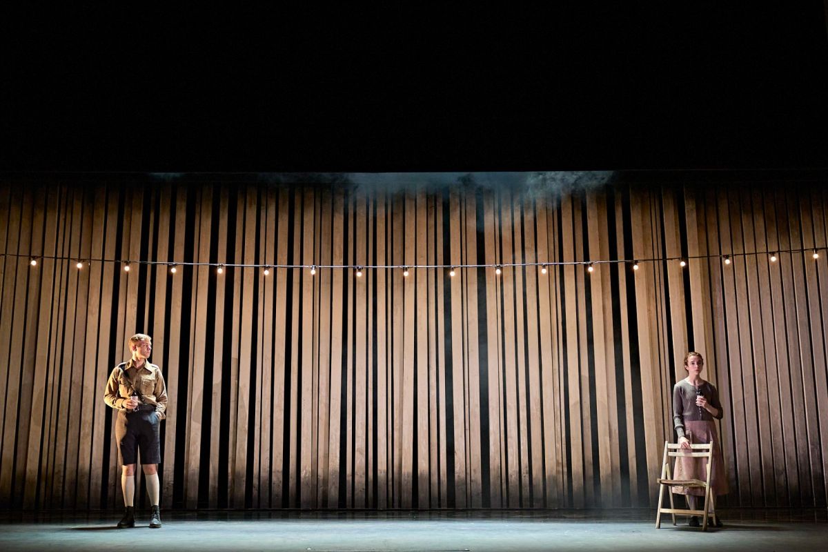 The motif of light pervades Wohl’s play, from the opening scene’s bright ‘outdoor lights’ for an oompah disco to the penultimate scene’s fireworks. An effect of Rosanna Vize’s slightly too stark set, which essentially consists of a row of vertical timber planks, is that Rob Casey’s lighting becomes absolutely central to the play’s design. It plunges us from darkness (bar torchlight) to a dazzling, disorientating glow that scorches the eyes. (Though such moments were visually impressive, the production did feel a little basic, considering the Old Vic sells a large proportion of their tickets for £65.) The play builds to a final moment in which the characters stare out to sea, enchanted by the ‘bright’ future ahead. We are left to conclude for ourselves whether this is a resurgence of ideological zeal for Nazism, or a premonition of the oncoming bombing across Europe.