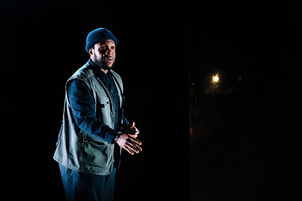 It makes for a strong contrast with the solemn funeral that follows. Jonathan Ajayi is particularly impressive as Laertes – his resolve after his father’s death (in his attempts to comfort Ophelia) now shattered by the devastating further loss of Ophelia. Yet the restrictiveness of the set – and the resultingly poor blocking – pushes Hamlet off the main stage, crouched in the shadows. Why has this moment, which should be a whiplash realisation for Hamlet, been hidden? Hamlet’s anagnorisis should surely not be invisible.