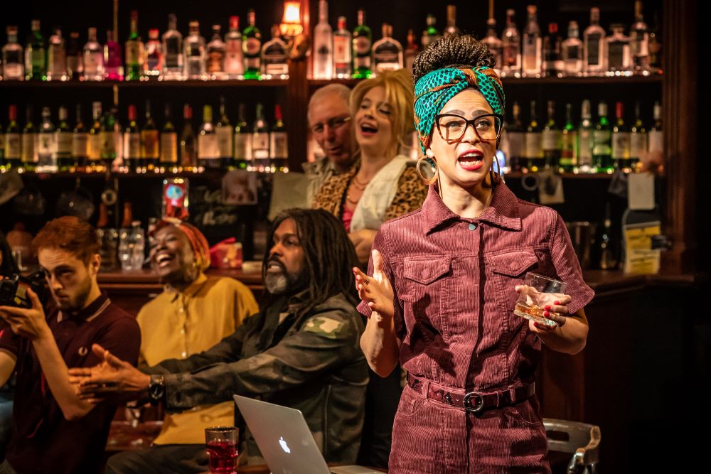 This is precisely what Zadie Smith has brilliantly achieved in The Wife of Willesden, a reworking of Geoffrey Chaucer’s ‘Wife of Bath’s Tale’ from The Canterbury Tales, written in the late 14th century. This new piece was commissioned to celebrate Brent being awarded the title London Borough of Culture in 2020 (out of the 32 eligible). Hence, it is no longer set on the road to Canterbury, but in a very different destination of many a pilgrimage: the pub. Specifically, the Sir Colin Campbell pub in Kilburn – directly across the road, in fact, from the Kiln Theatre. Smith’s premise is that one evening, while she was in the pub, Polly the pub landlord announced a lock-in, during which everyone told stories. The best will receive the coveted prize of a full English breakfast the next morning, on the house – and with chips.