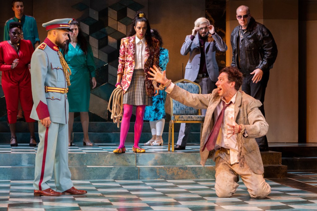 As brilliant as the production is, it would be fair to say that Shakespeare provides an organising structure to which comedy can be added, rather than being the true source of the comedy. Unlike in The Wife of Willesden, say –Zadie Smith’s reworking of Chaucer to contemporary Kilburn – the jokes are largely additions here, rather than finding the humour in the original. Perhaps The Comedy of Errors is simply less fertile material than The Canterbury Tales. Indeed, placing an early work from Shakespeare next to Chaucer in his prime arguably makes for an unfair comparison. Shakespeare’s comedy here comes not from exposing fundamental truths about the world than from wordplay – and comic language in The Comedy of Errors is fundamentally obscuring, rather than revealing. In Ephesus, speaking is an invitation to be misunderstood.