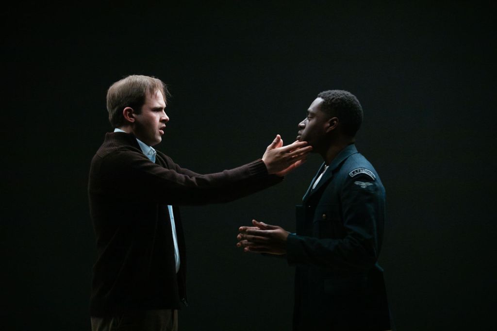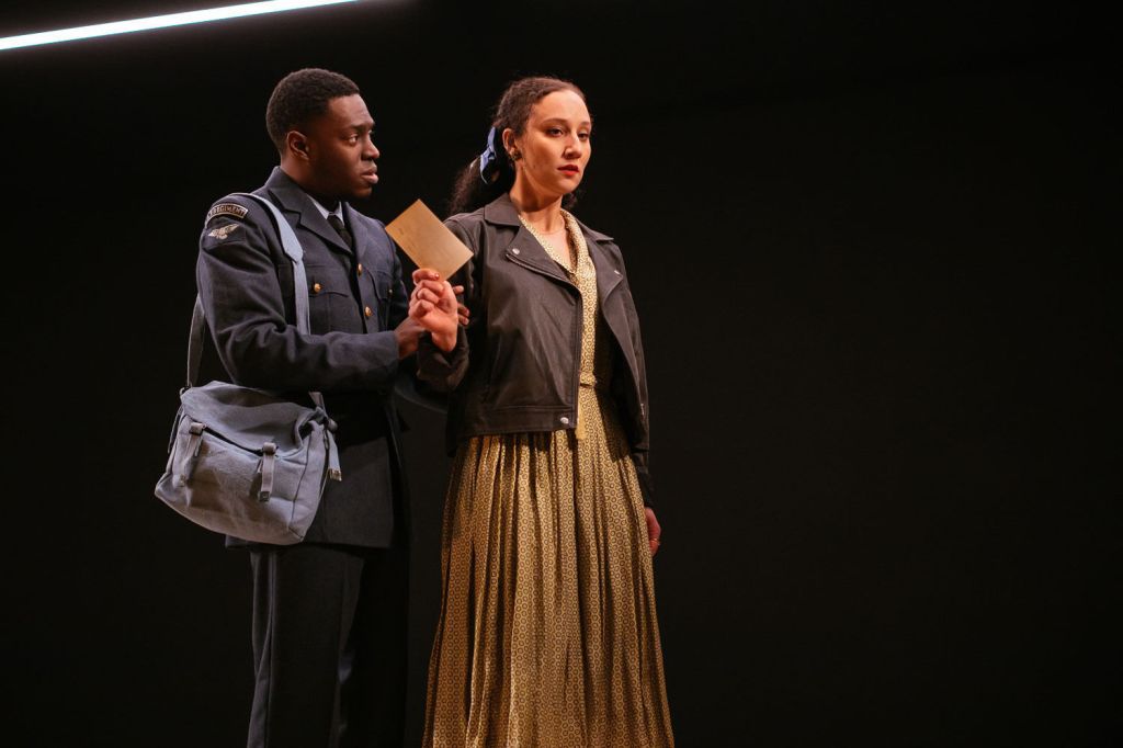 Yet the play rarely alights on a single mode of storytelling for long, ever-shifting between the past and present, with impressionistic, dream-like sequences peppered through. It is at its best when communicating through simple, powerful images – which convey several layers of meaning at once. Childhood is potently staged with McDougall and Nathaniel Christian flying paper aeroplanes, both guided by Becky. She works to prevent her boyfriend and the school crush she has recently reconnected with from colliding, neatly spelling out the love triangle that forms the basis of much of the drama. Yet the simulation also reminds us, of course, of the real planes that flew and fell out of the skies – shot down in the Battle of Britain.
