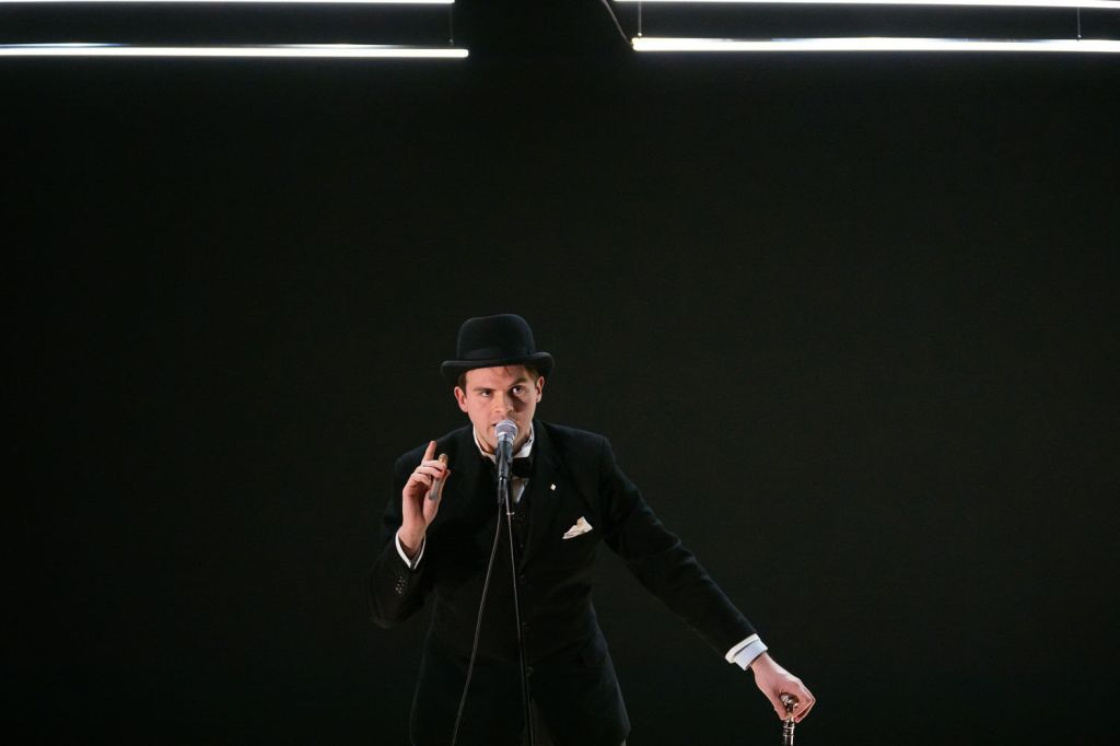The boundaries of conventional drama – which have been strained throughout – collapse entirely at the play’s bravura conclusion. A touching section sees Becky’s schoolfriend Lewis, an aspiring musician, sit down at his piano and tell us the story of how he will score a number one hit off the back of the chords he is improvising right there. Nathaniel Christian shines as he movingly sketches a life is filled with glamour and success, but the bubble bursts and his self-belief soon falters. He revises his expectations down and down – maybe not the penthouse in New York, maybe Glasgow instead, maybe just the number one, or not. Maybe he’ll just keep doing what he’s doing. Would that be so bad? Then suddenly he and Becky find themselves at the 1940s fête – the fête he has refused to take part in. They are being strongarmed into duetting and their protestations simply do not register. Nothing Lewis or Becky say makes any difference. They are utterly trapped. The genre seems uncanny; we are plunged into something almost resembling horror.