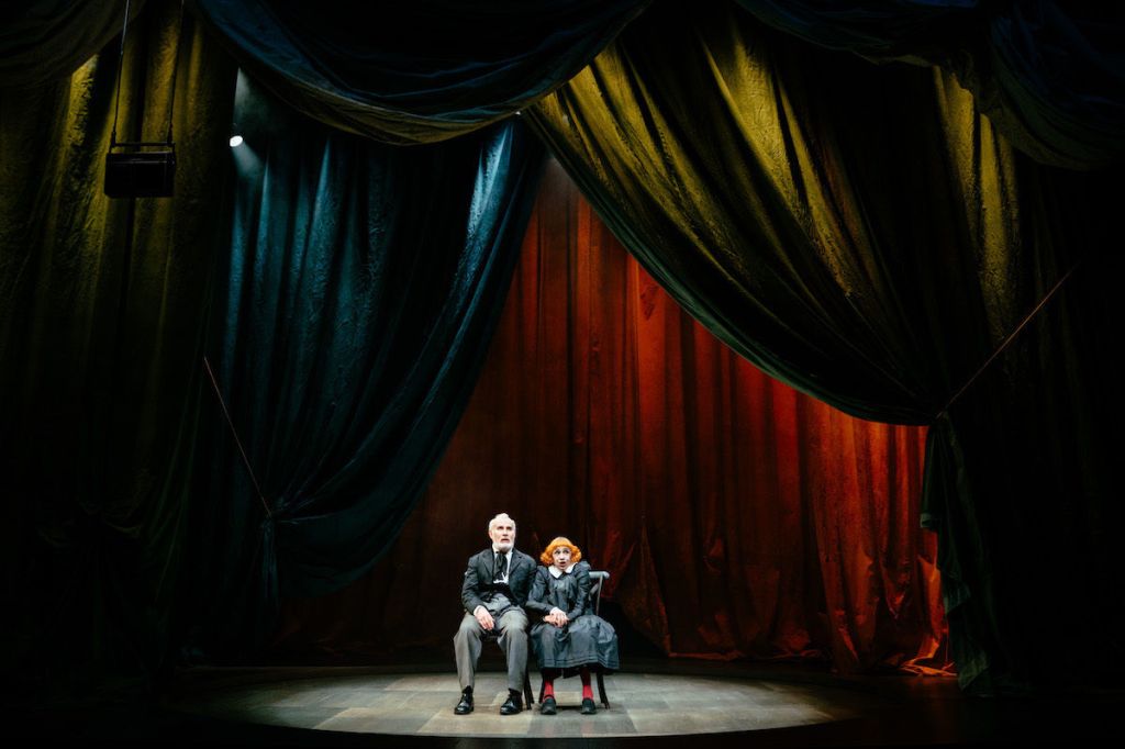 Very often, the serious British theatre experience for audiences is defined by a pretence of not existing – trying to dissociate from potential bodily discomfort, bound by unwritten codes of etiquette that dictate that the merest rustle of a sweet packet is a transgression against the theatrical illusion. Such dissociation is all but impossible here. From the start, in an extremely funny, several-minute section added to the play’s beginning, we are made aware of our presence. Sat under the house lights, the audience overhears the actors through an intercom they purportedly do not realise is broadcasting. We are denied the customary plunge of the space into darkness – at which point we often would, for all intents and purposes, cease to exist. Instead, we sit – waiting for the show to begin (but of course it already has) – oddly aware of ourselves as the actors peek through the curtains and note that we’re all sitting there waiting.