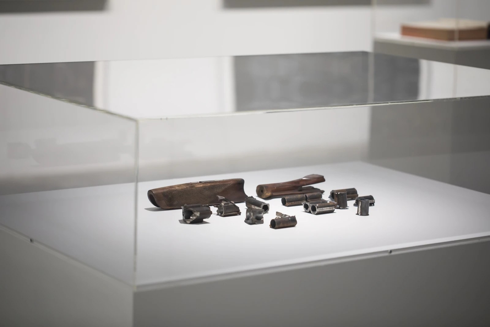 This ethical play seems to be a deliberately fraught part of Parker’s design. It would surprise me if an artist who is (at times) so political considers these collaborations – especially with UK Border Force, the police, and Parliament – to be neutral. Yet Parker’s laconic phrasing deliberately obfuscates the process of actually obtaining her unusual, highly political materials. Is her status in the art world enough to open doors, or does she pay for resources and access? Are these unlikely friendships forged through bureaucratic email exchanges, eccentric handwritten requests, or steadily fostered personal relationships – toasted over chummy glasses of champagne? The collaboration seems one of the exhibition’s central subjects. After creative destruction, it is probably Parker’s second-most significant artistic gesture. So much of Parker’s work concerns negative space – the sheets of red card from which remembrance poppies are cut, the grooves cut out of vinyl records – yet the intriguing stories of how Parker acquired her resources are curiously unknown, though they seem immensely significant. The magician shows us her hand – but hides many more secrets.