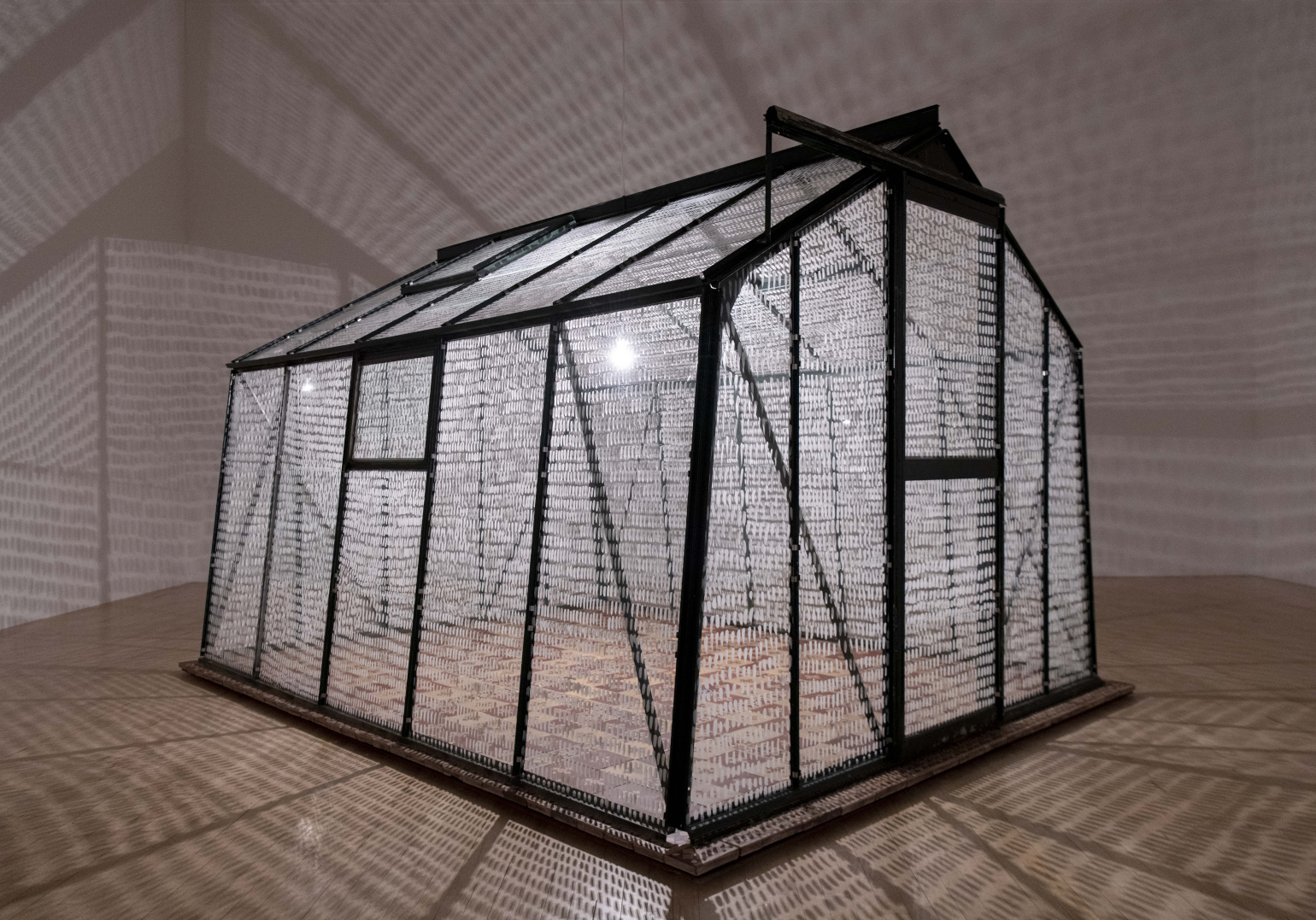 This issue particularly afflicts Island, a new work constructed from a greenhouse, lit from the inside by a dimming and brightening single bulb – which seems like an echo of Cold Dark Matter. The accompanying wall text reveals a charming anecdote about Parker’s memories of growing tomatoes in her childhood. Yet then comes the revelation that the white daubing on the inside of the glass is pigmented with the famous white rock of the cliffs of Dover. The partially whitewashed walls evoke a nation shutting itself off. It perhaps suggests Shakespeare’s Richard II too, under which thrums an ongoing debate about whether England is better conceived of as a garden (albeit full of weeds under Richard’s wanting stewardship) or as a defended, military castle (a position advanced by the ultimately triumphant Henry Bolingbroke). Island presents a relatively unspecific sense of English myth – of which, especially since the 2016 EU membership referendum, the White Cliffs of Dover have become offhandedly symbolic.