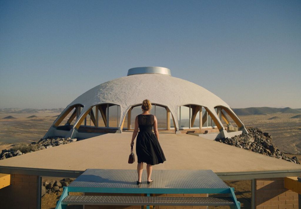 Though much of his performance is merely functional, Styles is surprisingly good in the short flashback sequence, playing the embittered partner to Pugh’s exhausted but purposeful maternity doctor. Playing against type, living in a dingy flat with a patchy beard, his veneer of ineffectuality hides a growing malevolence. When his character complains of being ‘starving’ upon her return from a thirty-hour shift, Styles lends the line just the right amount of implied blame – that she should have been cooking for him, rather than working – to pitch his character as an insidious closet misogynist, in the midst of radicalisation down an internet rabbit hole of male supremacism. (The protagonist’s name, Alice Warren, curiously evokes Alice in Wonderland, falling down the rabbit hole only because her partner pushes her in.) In these scenes, you can see the bones of a much more interesting film lurking within this one. Though its distinctive aesthetic palette, delivered through immaculate costuming by Arianne Phillips and soaring cinematography from Matthew Libatique, is a clear plus point for Don’t Worry Darling, there is an arguably more worthwhile story to be told in the everyday squalor of normal disappointing life.