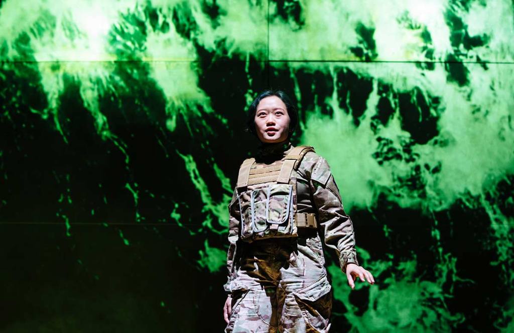 Written by Dawn King, Directed by Natalie Abrahami, Design by Georgia Lowe, Lighting Design by Jai Morjaria, Sound Design and Composition by Xana, Movement Direction by Anna Morrissey and Aaron Parsons, Video Design by Nina Dunn, Casting Direction by Anna Cooper, Voice Coach Emma Woodvine, Associate Direction by Joseph Hancock, Starring Elise Alexandre, Francis Dourado, Jowana El-Daouk, William Gao, Pelumi Ibiloye, Honor Kneafsey, Joe Locke, Rue Millwood, Charlie Reid, Meréana Tomlinson, Taya Tower, Jairaj Varsani, Nigel Lindsay, Lucy Cohu, Sharon Small